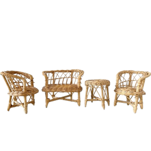 Set of Four Vintage Boho Rattan Doll Chairs
