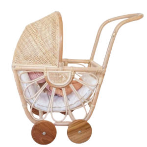 Rattan Dolls Pram with Casters
