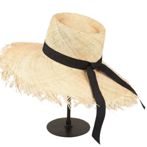 Woven Seagrass Flat Top Hat Ribbon Decoration