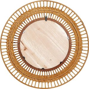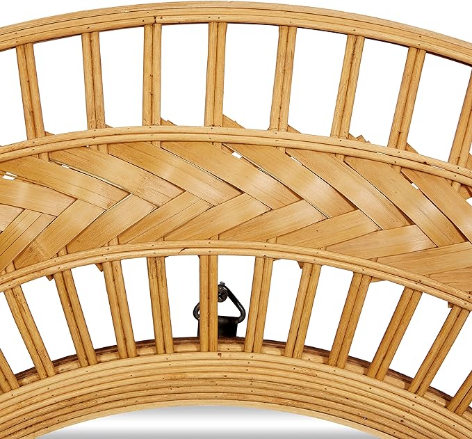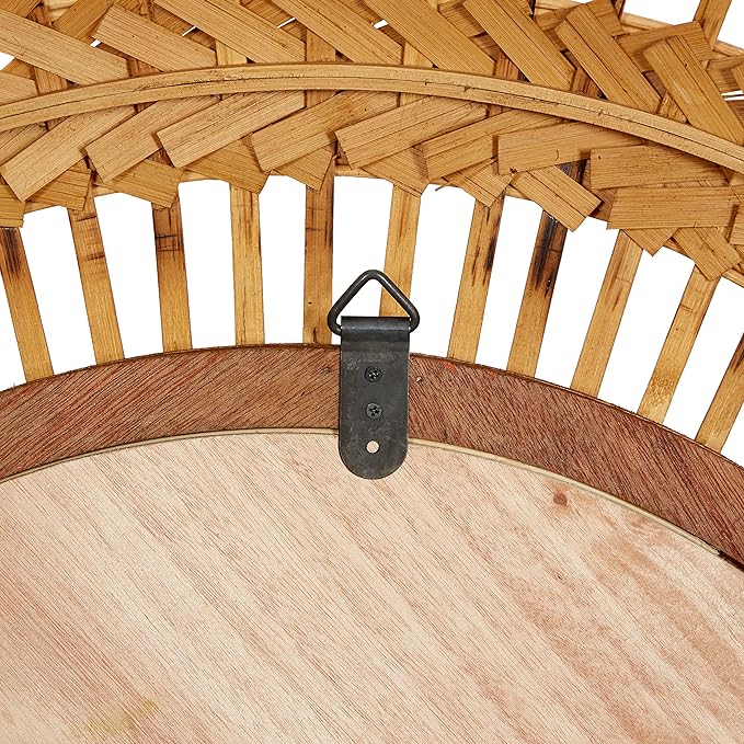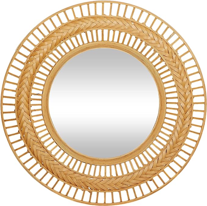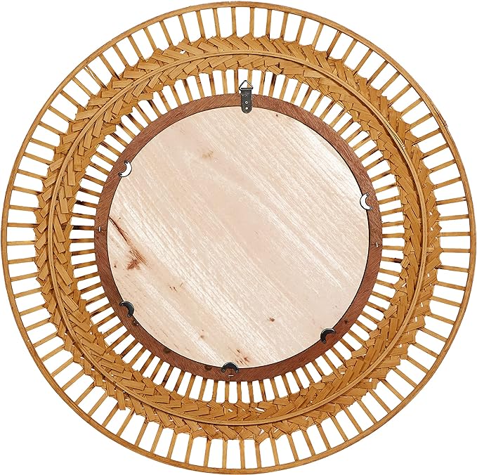 - FEATURES ROUND WALL MIRROR This round decorative wall mirror showcases a sunburst-inspired frame made of natural rattan forming a uniquely captivating braid pattern