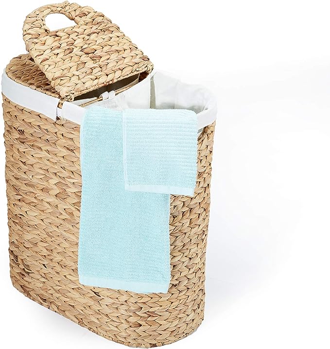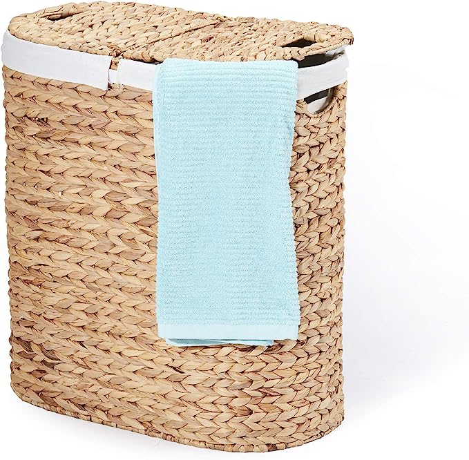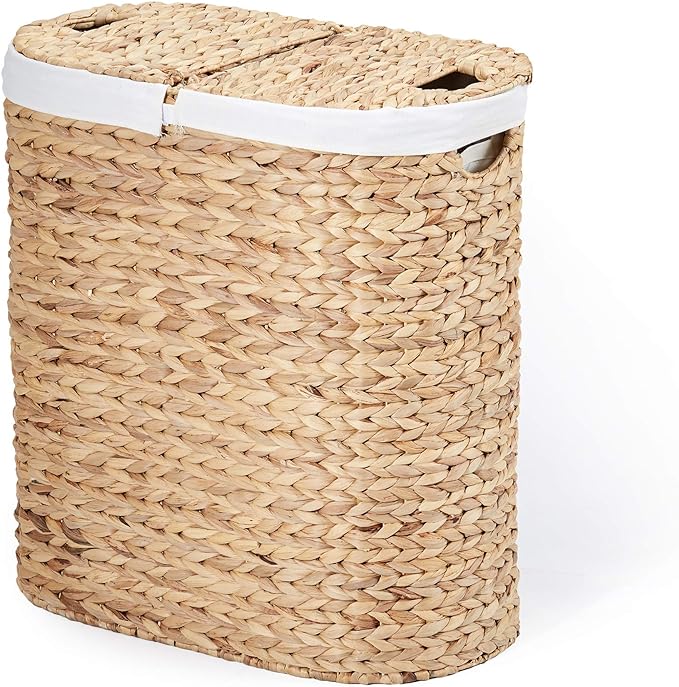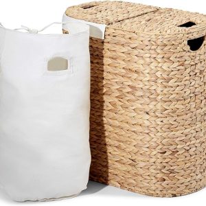 - TWO-SECTION LAUNDRY SORTER – Sort darks from lights with the two-sided storage compartments.