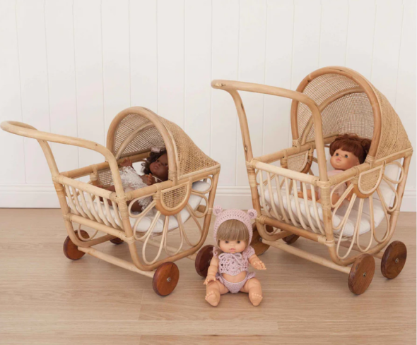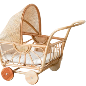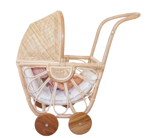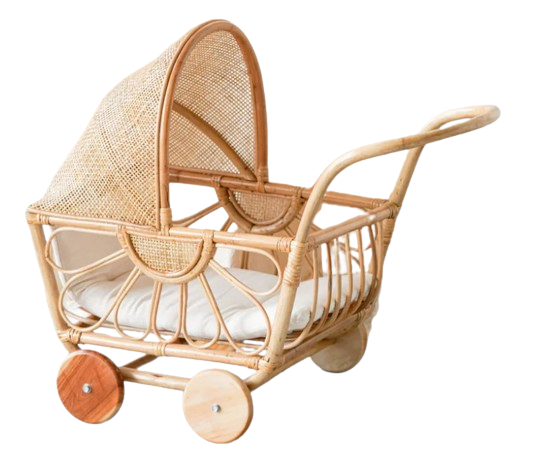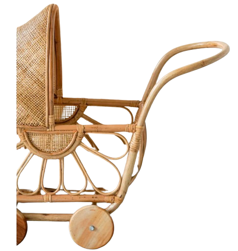 Rattan Dolls Pram with Casters