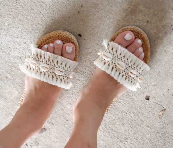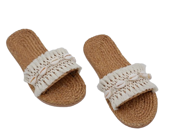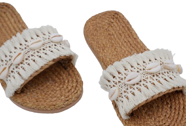 Water Hyacinth Sandals With Seashell Decor