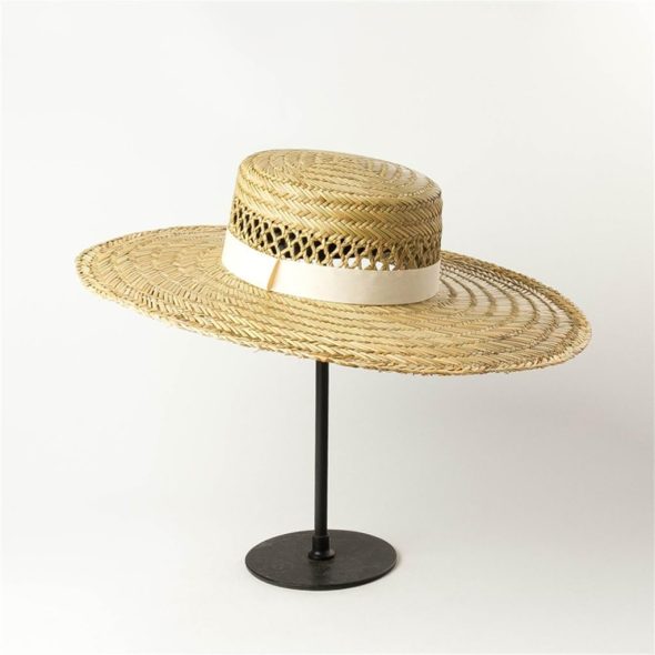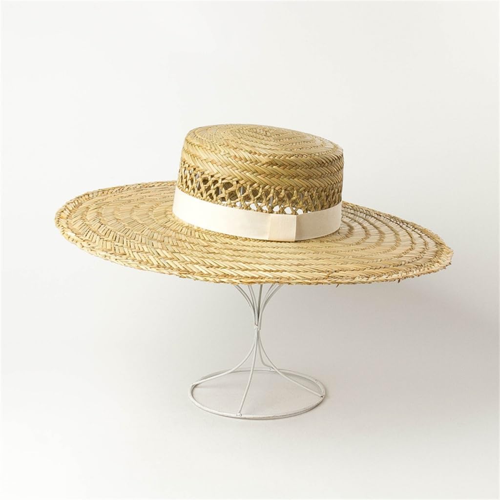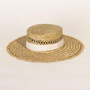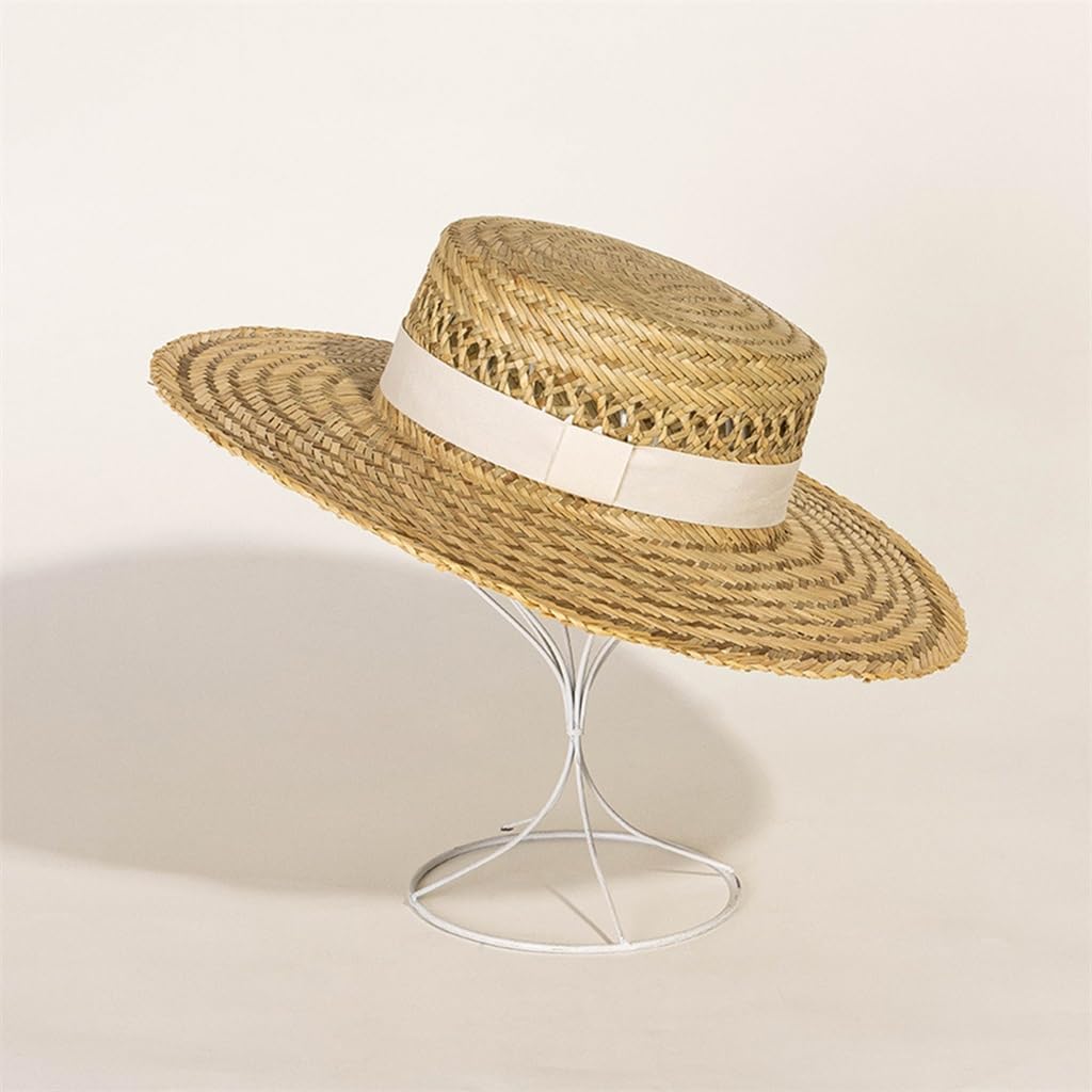 Woven Seagrass Flat Top Hat Ribbon Decoration